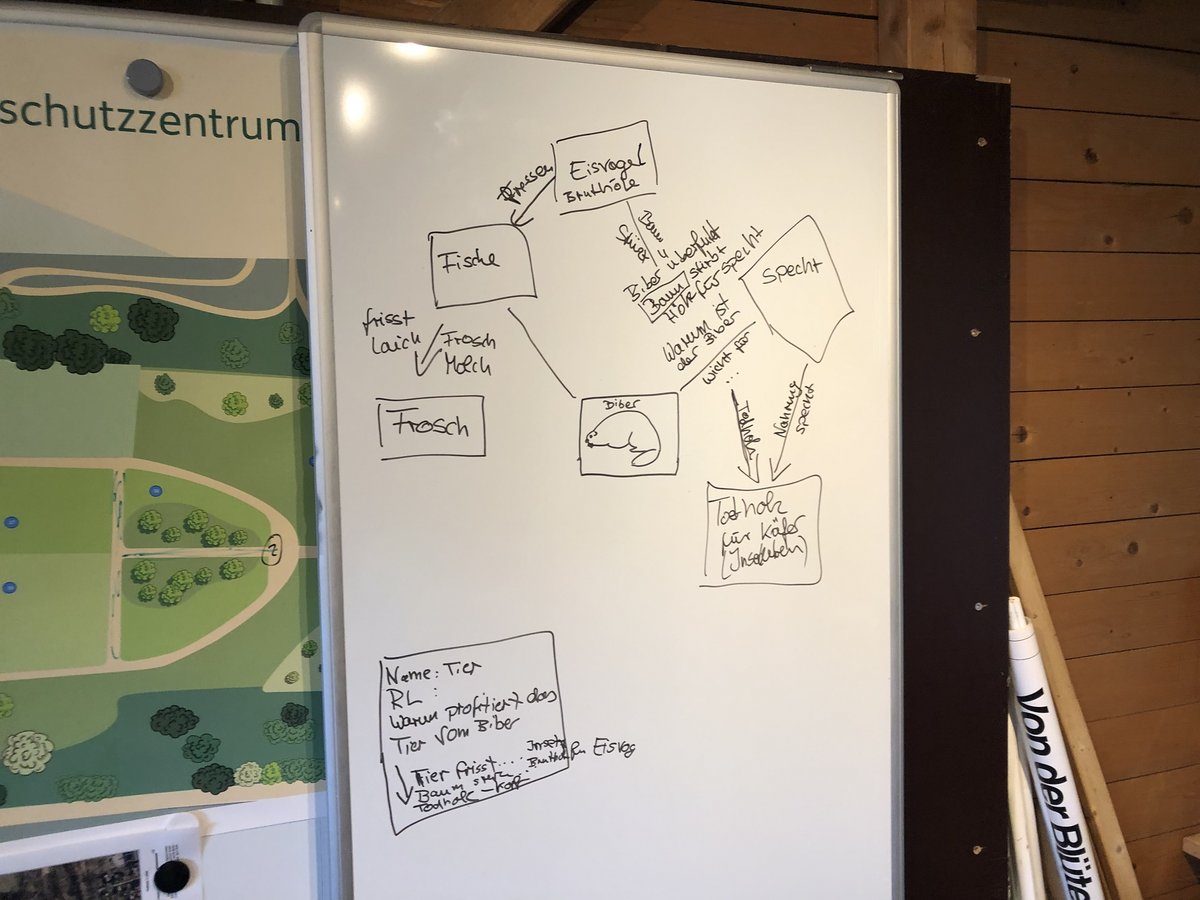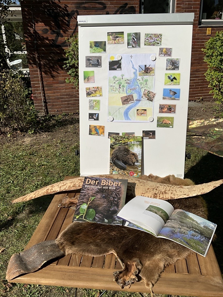 Ein besonderer Schwerpunkt lag auf dem Biber: Mit dem Biberrucksack, Spielen und einem Film erfuhren wir, wie er mit Dämmen und Burgen ganze Landschaften verändert, warum seine Zähne gelb sind und weshalb die Kelle wie ein Fingerabdruck einzigartig ist. So wurde deutlich, wie wichtig der Biber für die biologische Vielfalt ist.