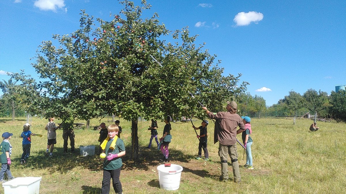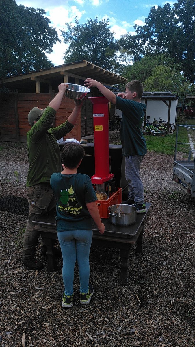 Praktisch ging es bei der Apfelernte zu. Die Kinder sammelten Äpfel, schnitten, häckselten und pressten sie zu frischem Saft, den sie anschließend mit nach Hause nehmen konnten.